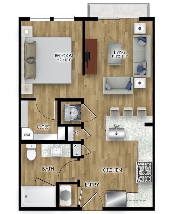 Apartment Model: Minimalist C | S3a$1,3001 Bedroom, 1 Bath, 579 sq ftAvailable Now![]()