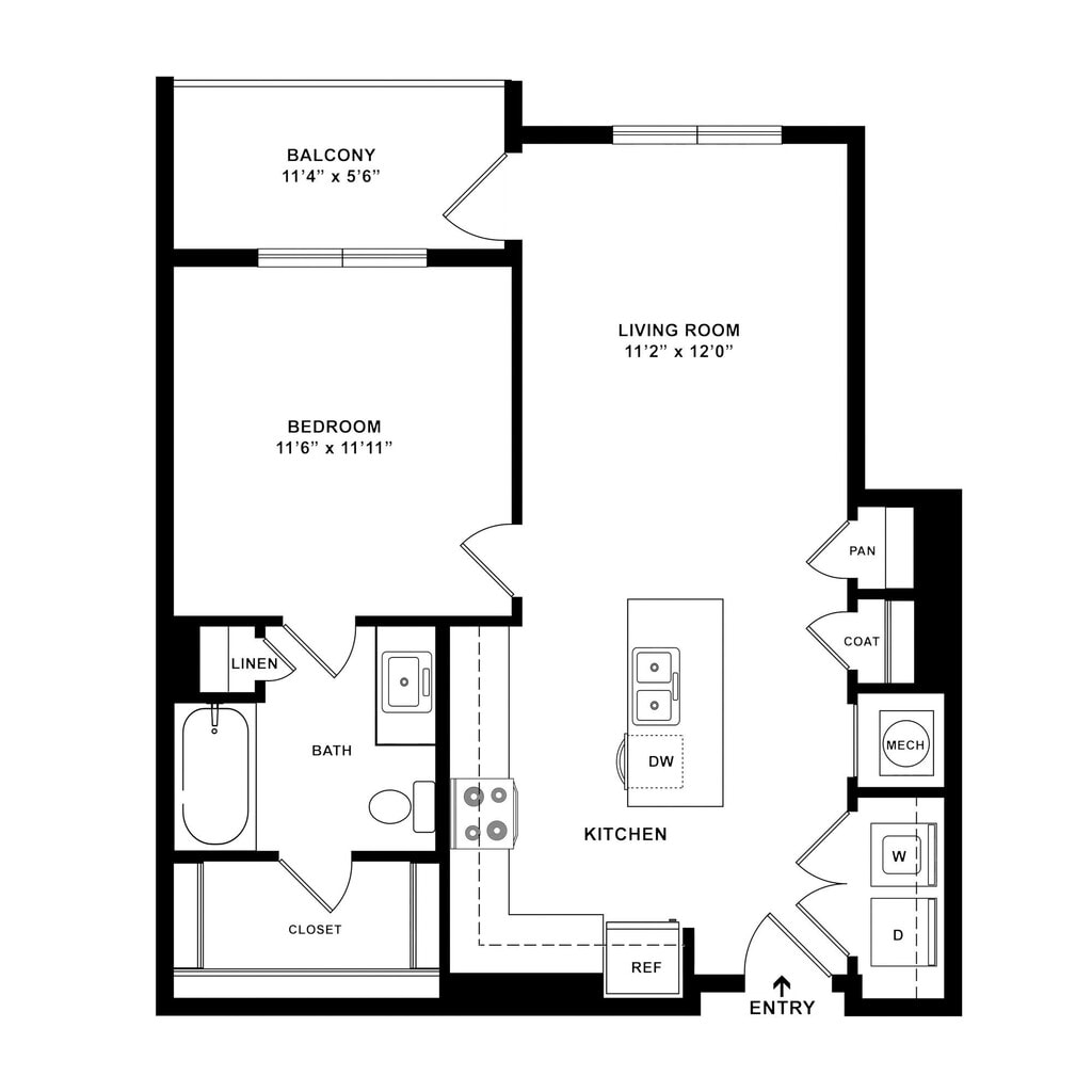Apartment Model: A1$1,5151 Bedroom, 1 Bath, 640 sq ftAvailable January 2, 2026![]()