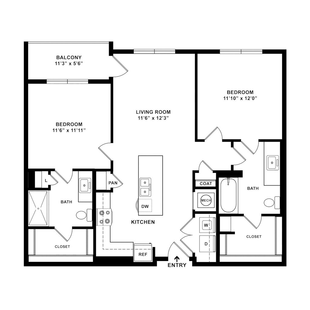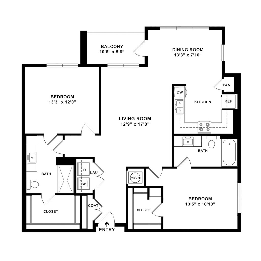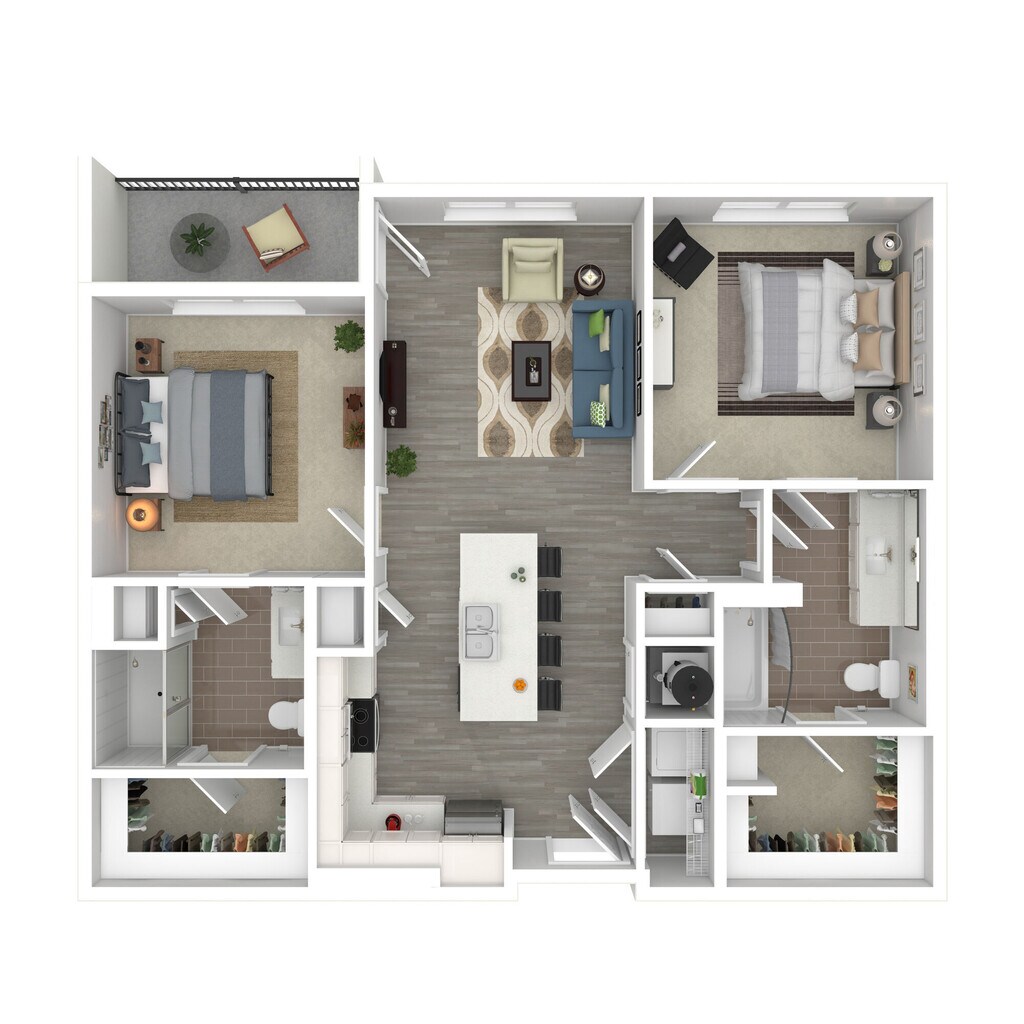 2 Beds, 2 Baths, 1317 sq ftAvailable NowLargest 2 BedroomThis is the largest 2 Bedroom at this PropertyModel Gallery