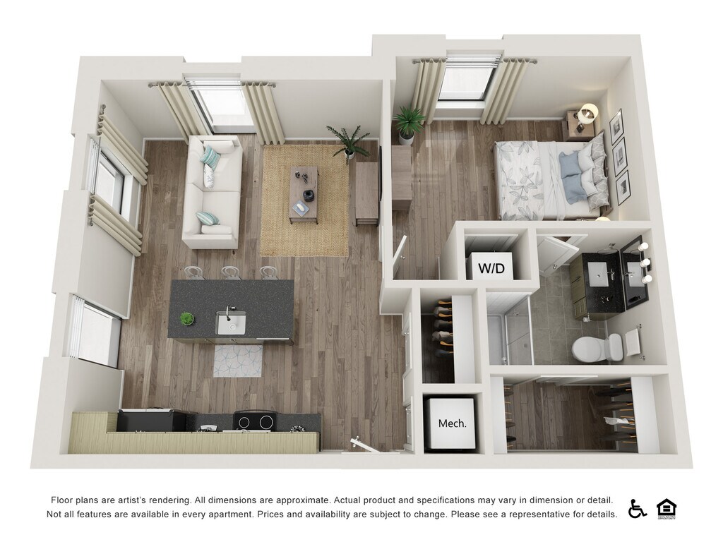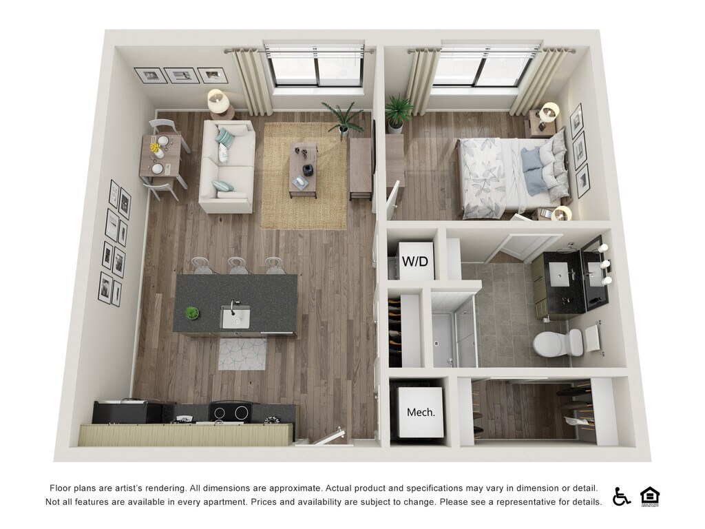 1 Bed, 1 Bath, 614 sq ftModel Gallery