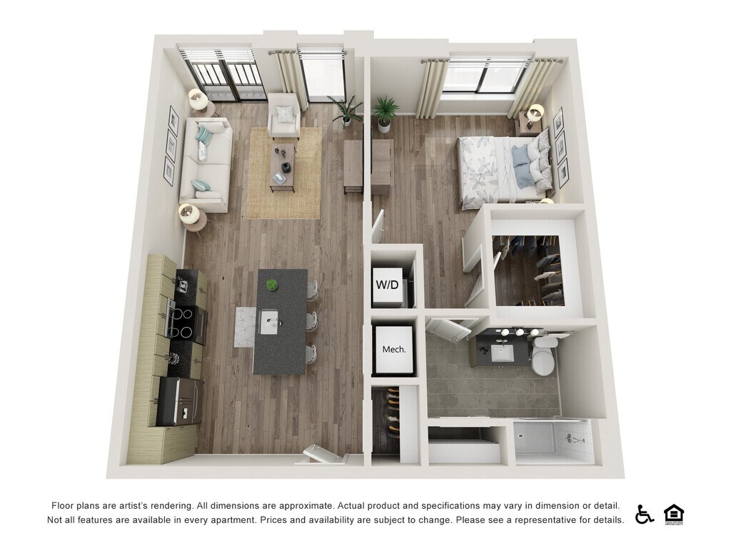 Apartment Model: 1 BR-ECall For Rates1 Bedroom, 1 Bath, 614 sq ftUnavailableFloor plans are artist's rendering. All dimensions are approximate. Actual product and specifications may vary in dimension or detail. Not all features are available in every rental home. Prices and availability are subject to change. Base rent is based on monthly frequency. Additional fees may apply, such as but not limited to package delivery, trash, water, amenities, etc. Deposits vary. Please see a representative for details.