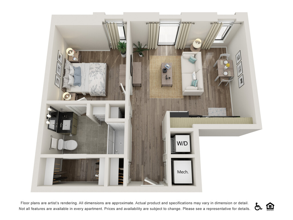 1 Bed, 1 Bath, 606 sq ftModel Gallery