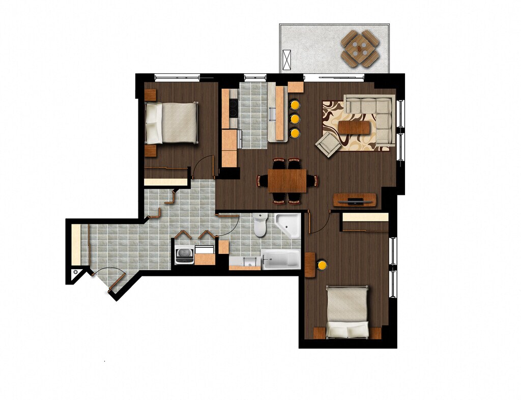 - Luxury wood and ceramic flooring