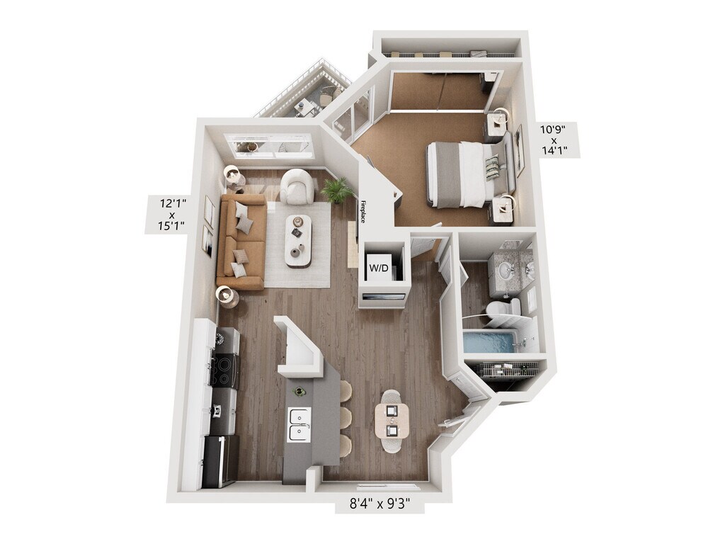 Apartment Model: 1 Bed, 1 Bath DFrom $2,5501 Bedroom, 1 Bath, 695 sq ftAvailable NowFloor plans are artist's rendering. All dimensions are approximate. Actual product and specifications may vary in dimension or detail. Not all features are available in every rental home. Prices and availability are subject to change. Base rent is based on monthly frequency. Additional fees may apply, such as but not limited to package delivery, trash, water, amenities, etc. Deposits vary. Please see a representative for details.