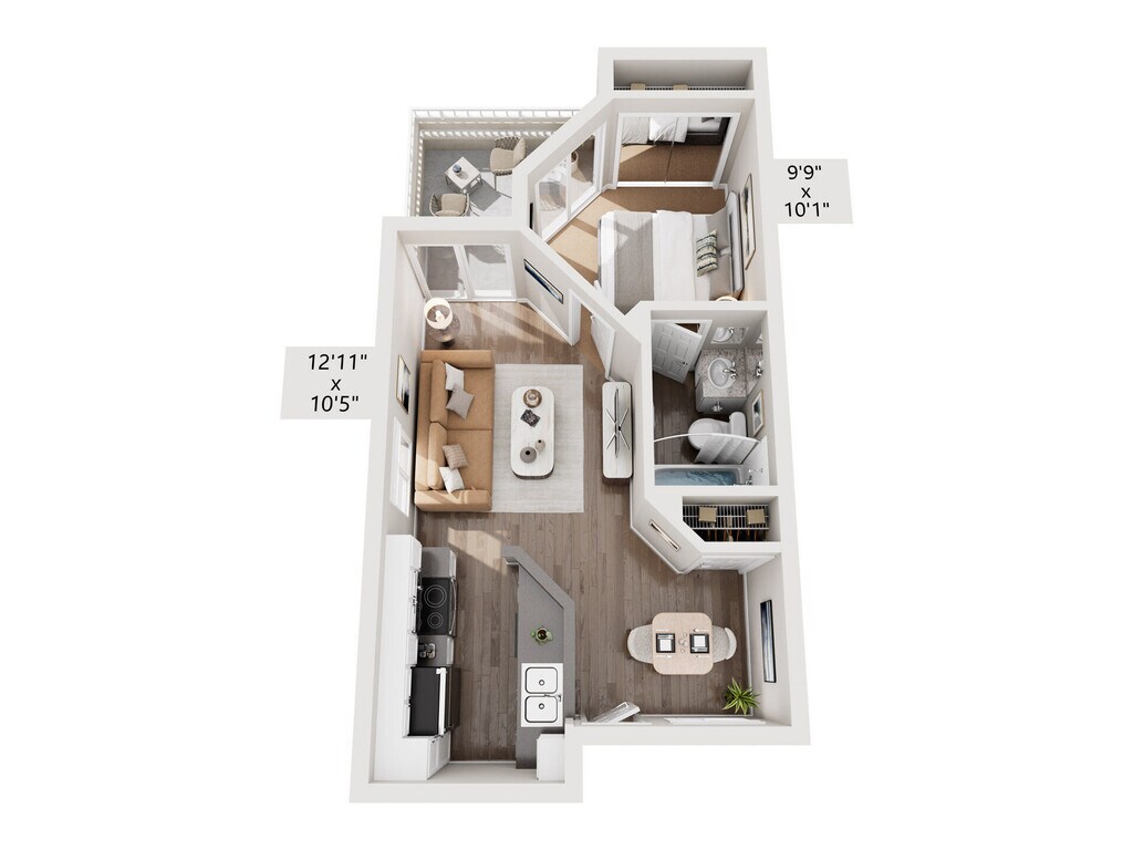Apartment Model: 1 Bed, 1 Bath A$2,3701 Bedroom, 1 Bath, 515 sq ftAvailable December 20, 2025![]()
