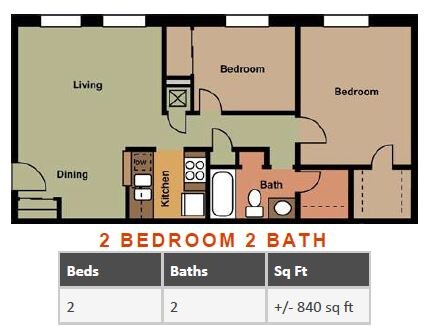 Availability Date Unit Sq Ft Unavailable 2 Beds, 2 baths 840 sq ft Apartment Model: 2 Beds, 2 baths2 Bedroom, 2 Bath, 840 sq ftUnavailable![]()