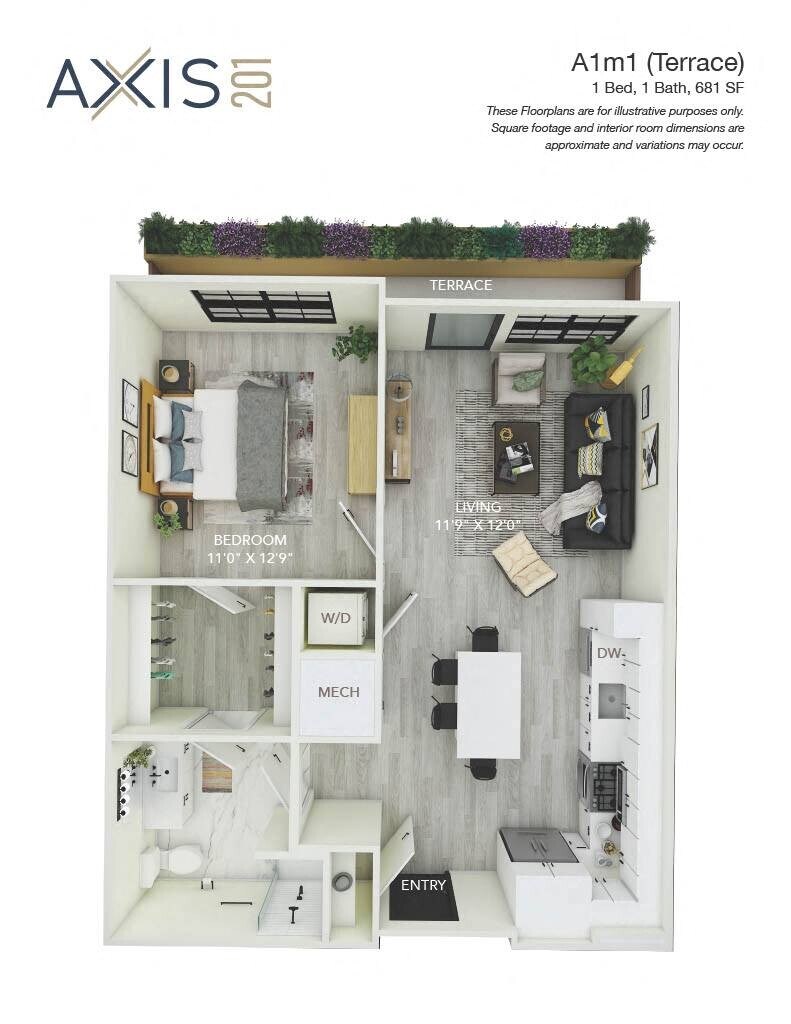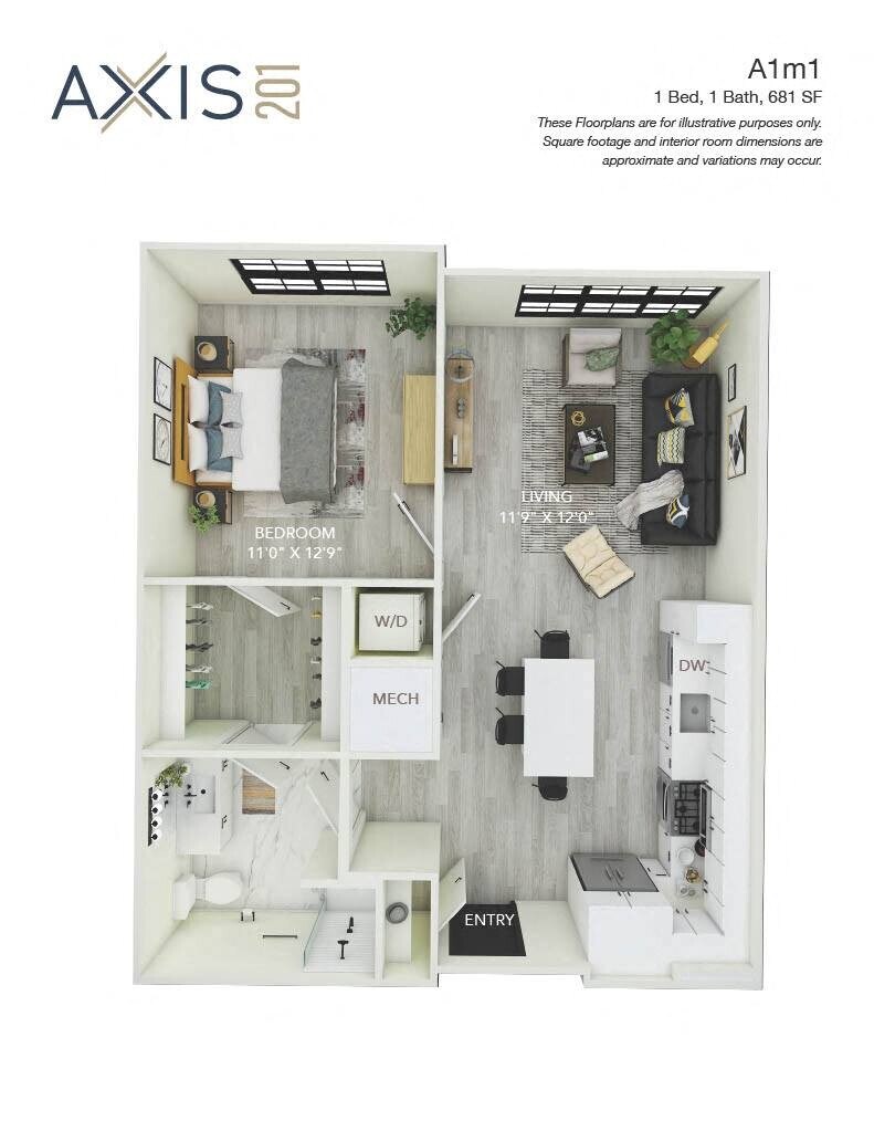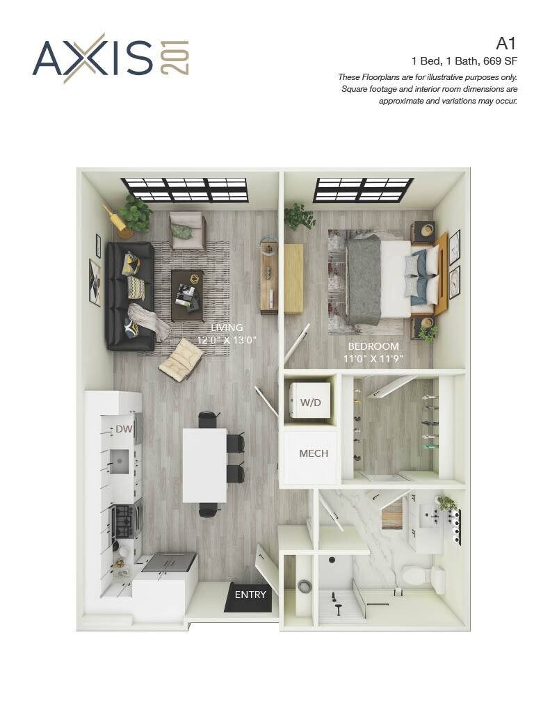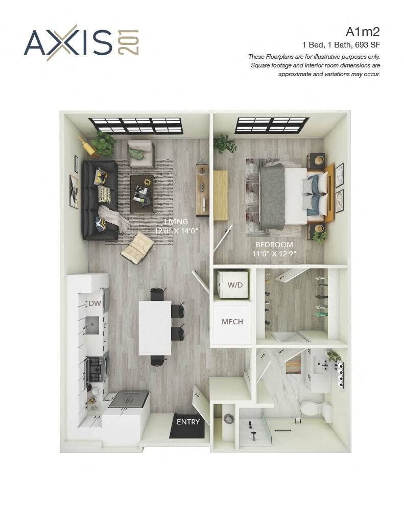 1 Bed, 1 Bath, 669-693 sq ftPlus FeesAvailable NowCheapest 1 BedroomThis is the cheapest 1 Bedroom at this PropertyModel Gallery