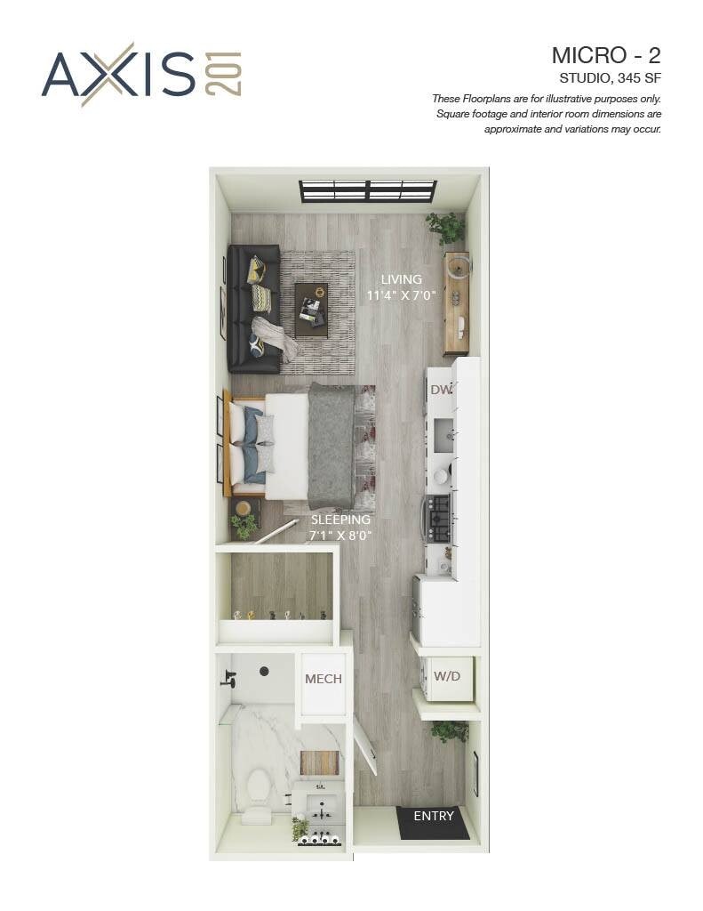 Studio - Floorplan 10 Apartment Unit: 0359Apartment Model: Studio$1,852Studio, 1 Bath, 345 sq ftAvailable Now![]()