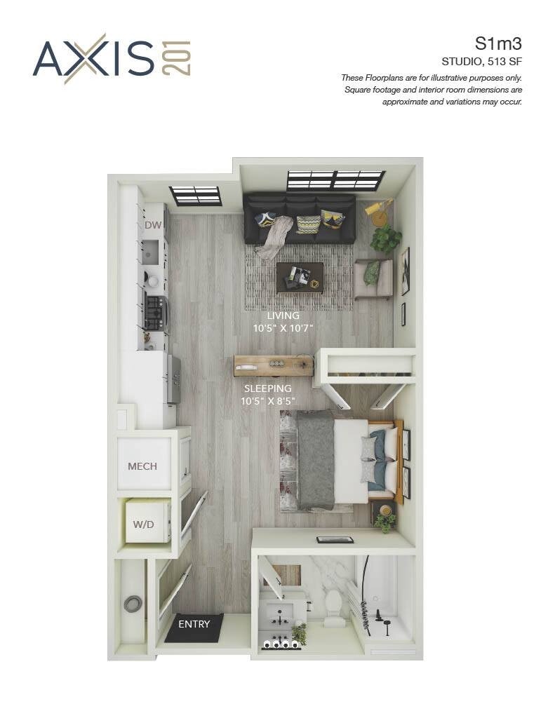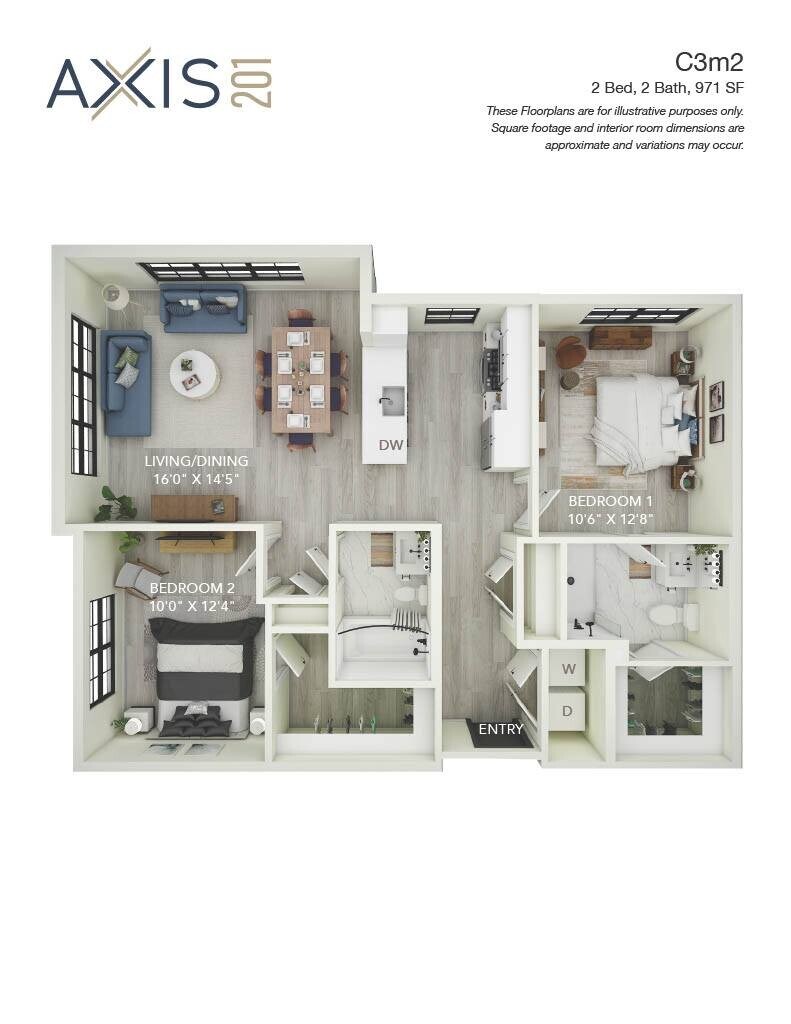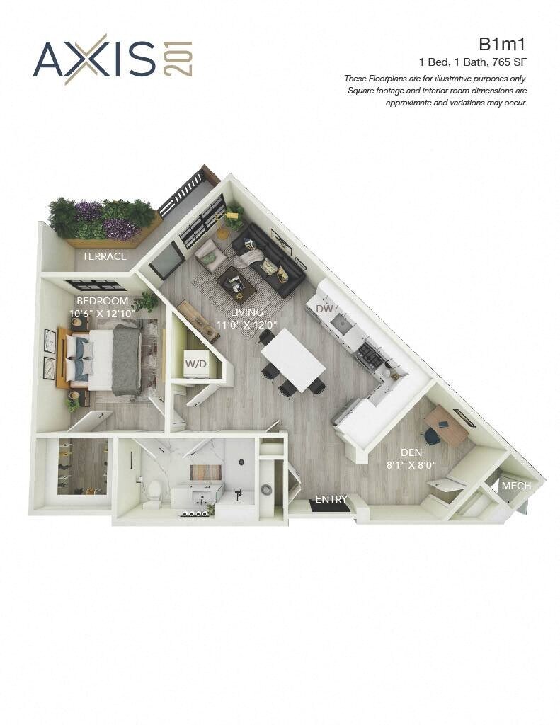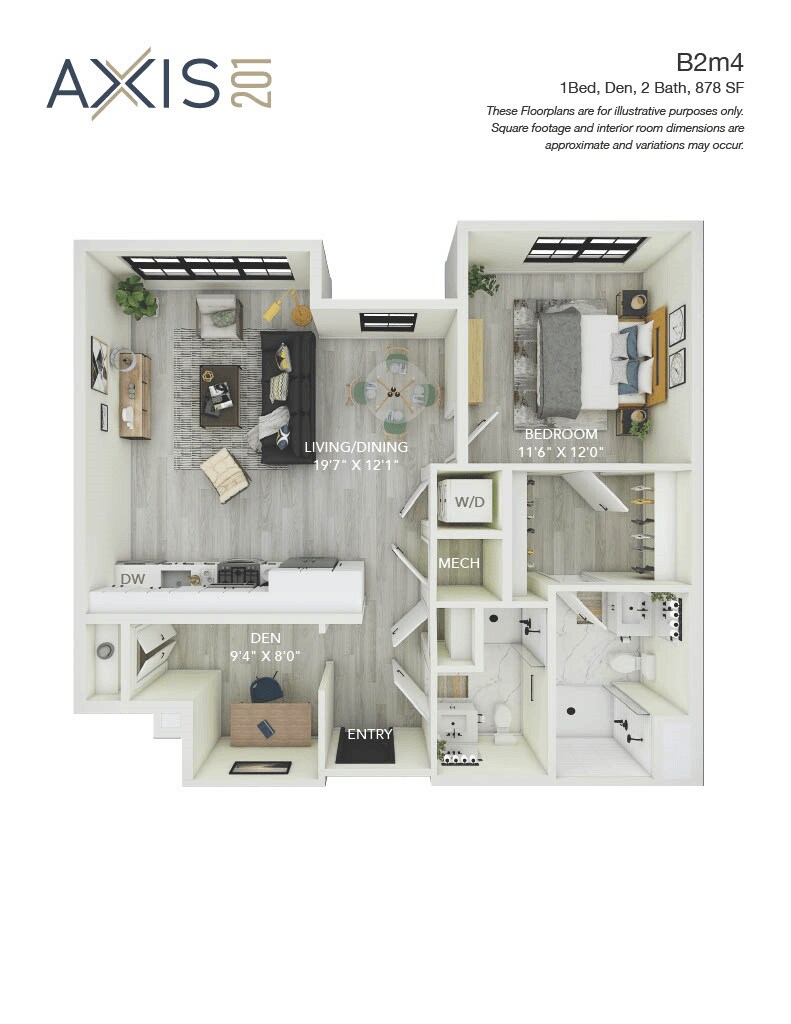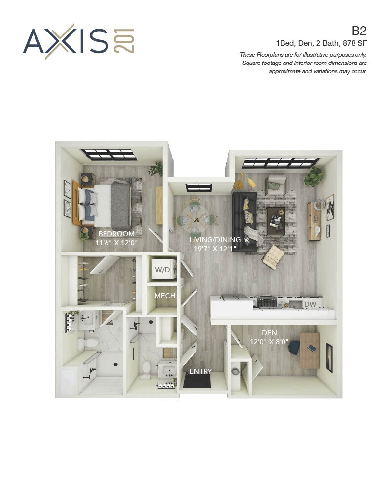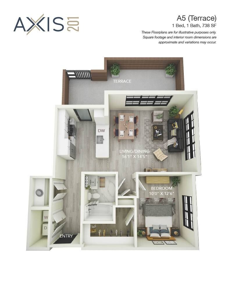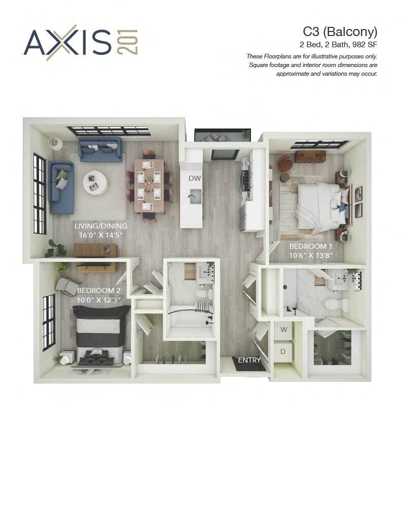Studio to 3 Bedroom Apartments at Axis 201 currently range from $1,762 to $4,635