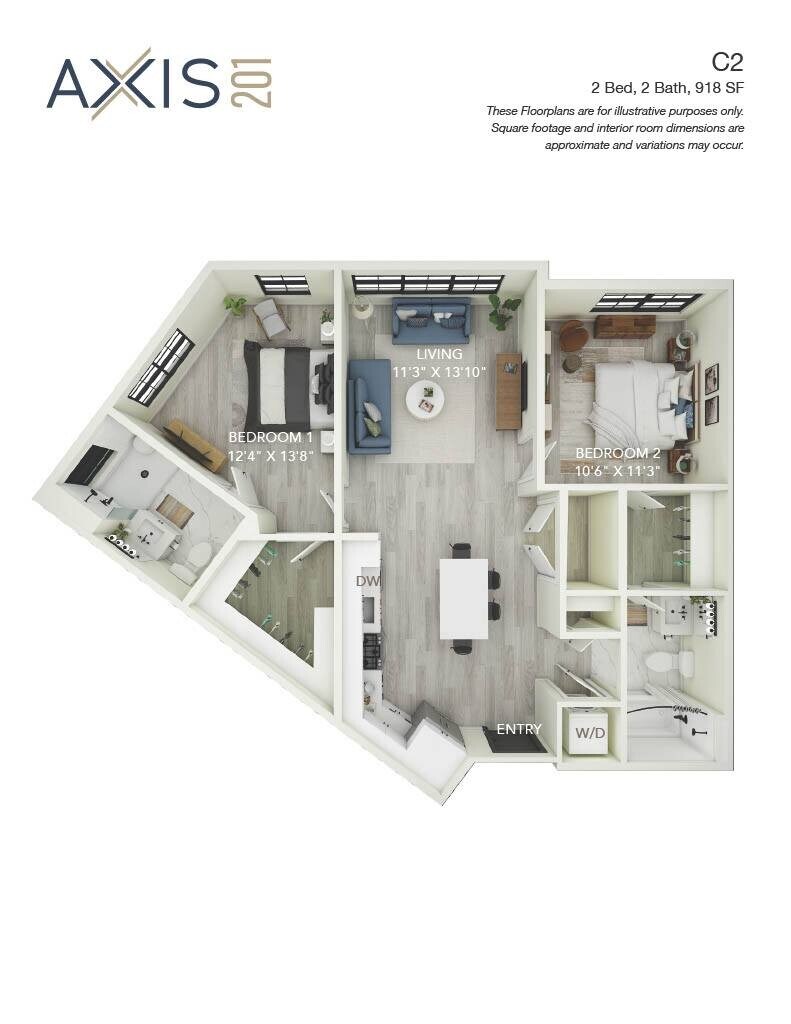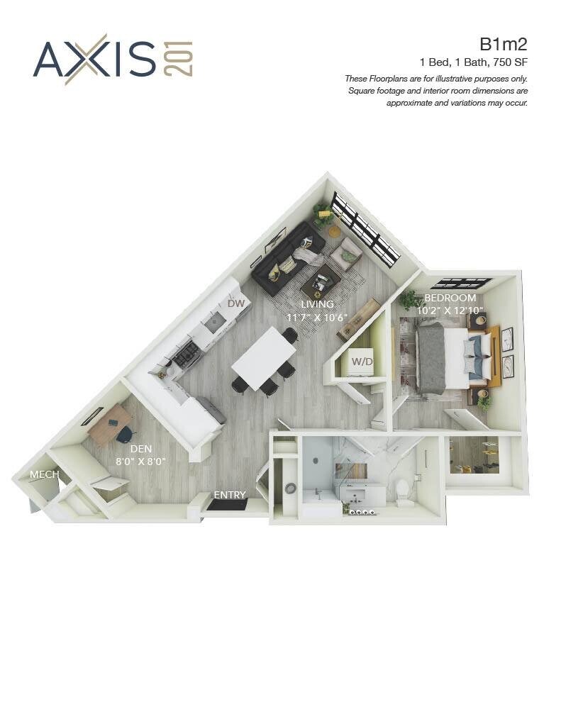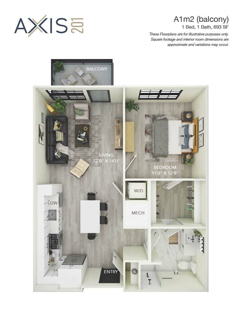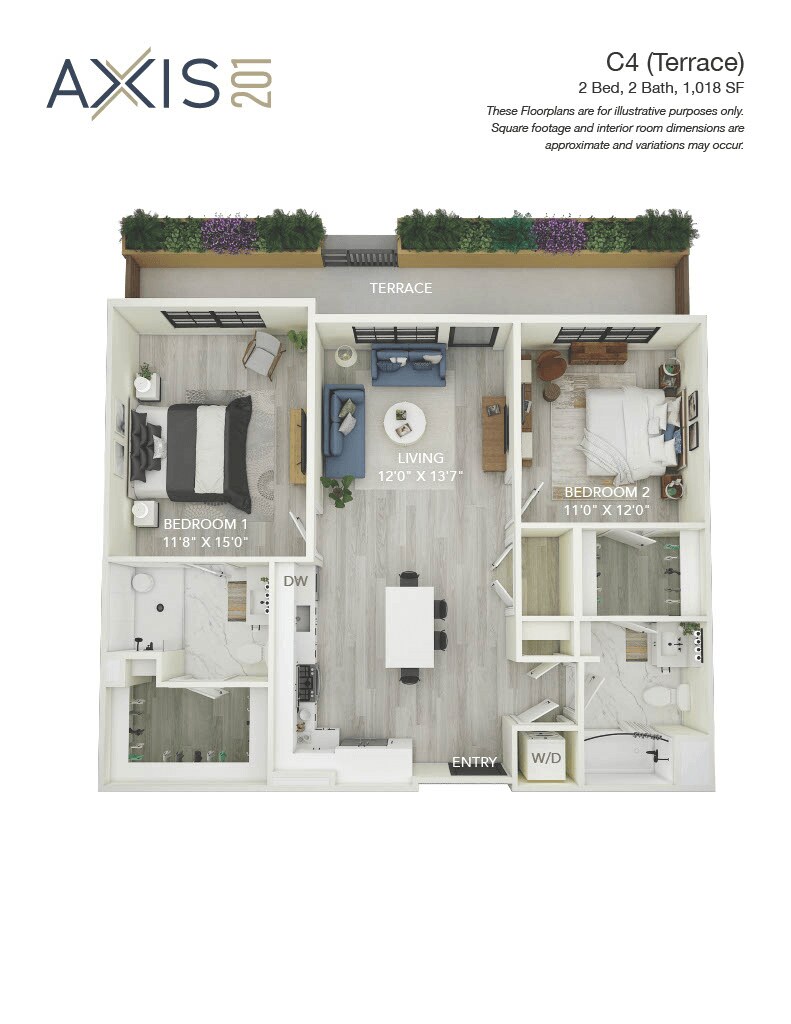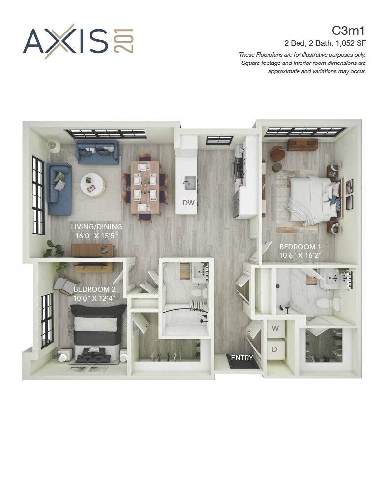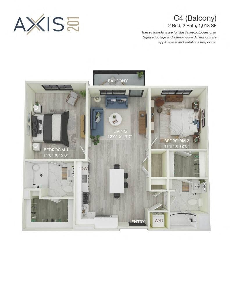 Studio to 3 Bedroom Apartments at Axis 201 currently range from $1,762 to $4,635