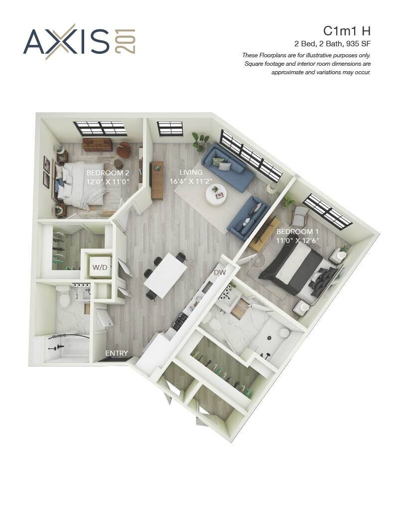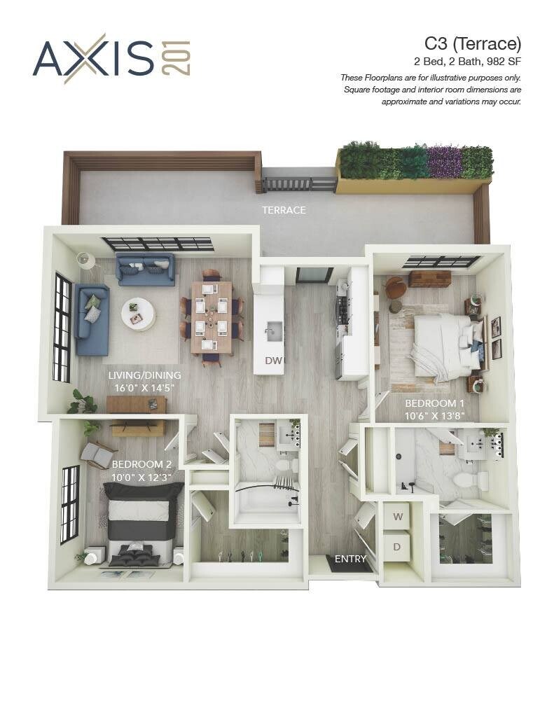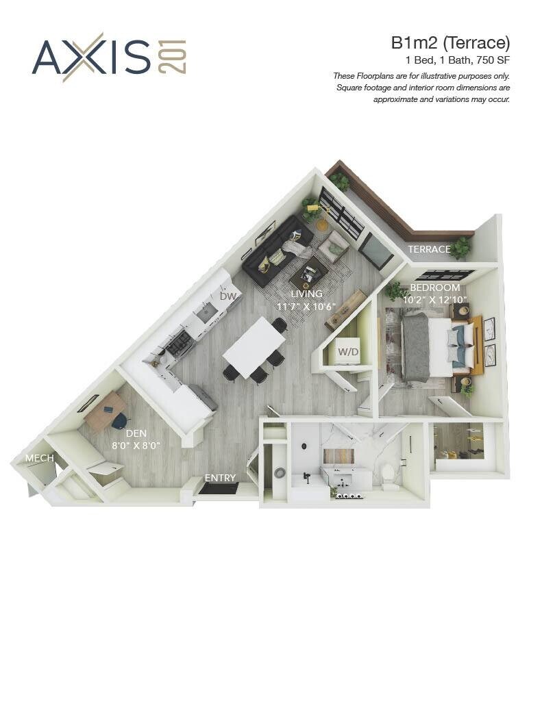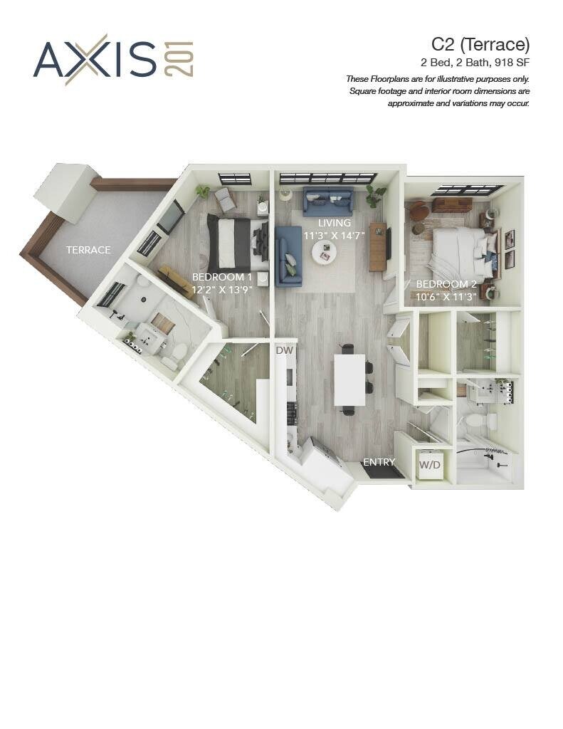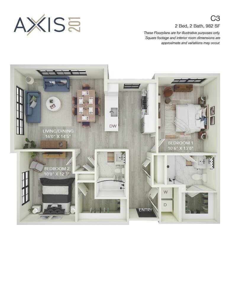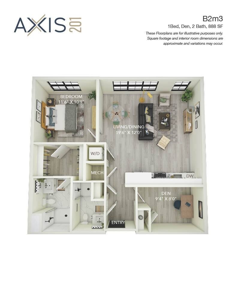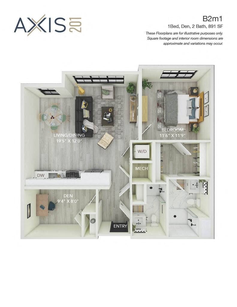Studio to 3 Bedroom Apartments at Axis 201 currently range from $1,762 to $4,635