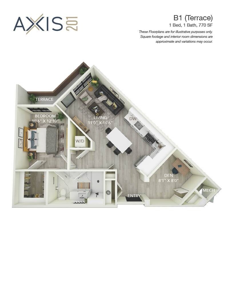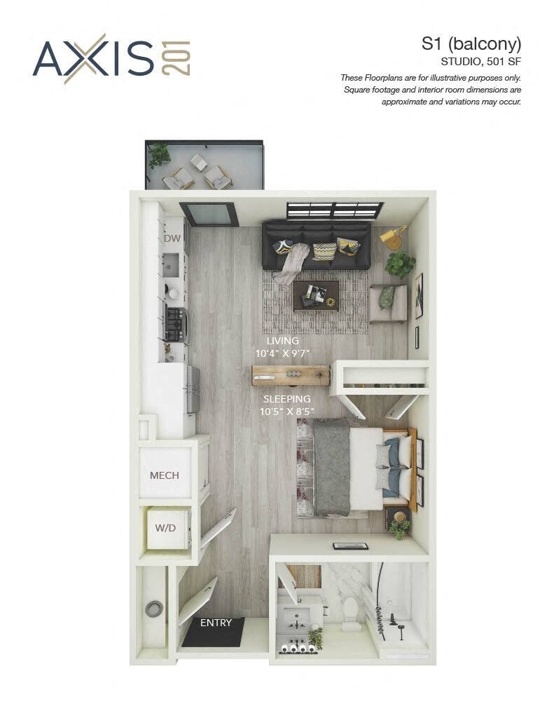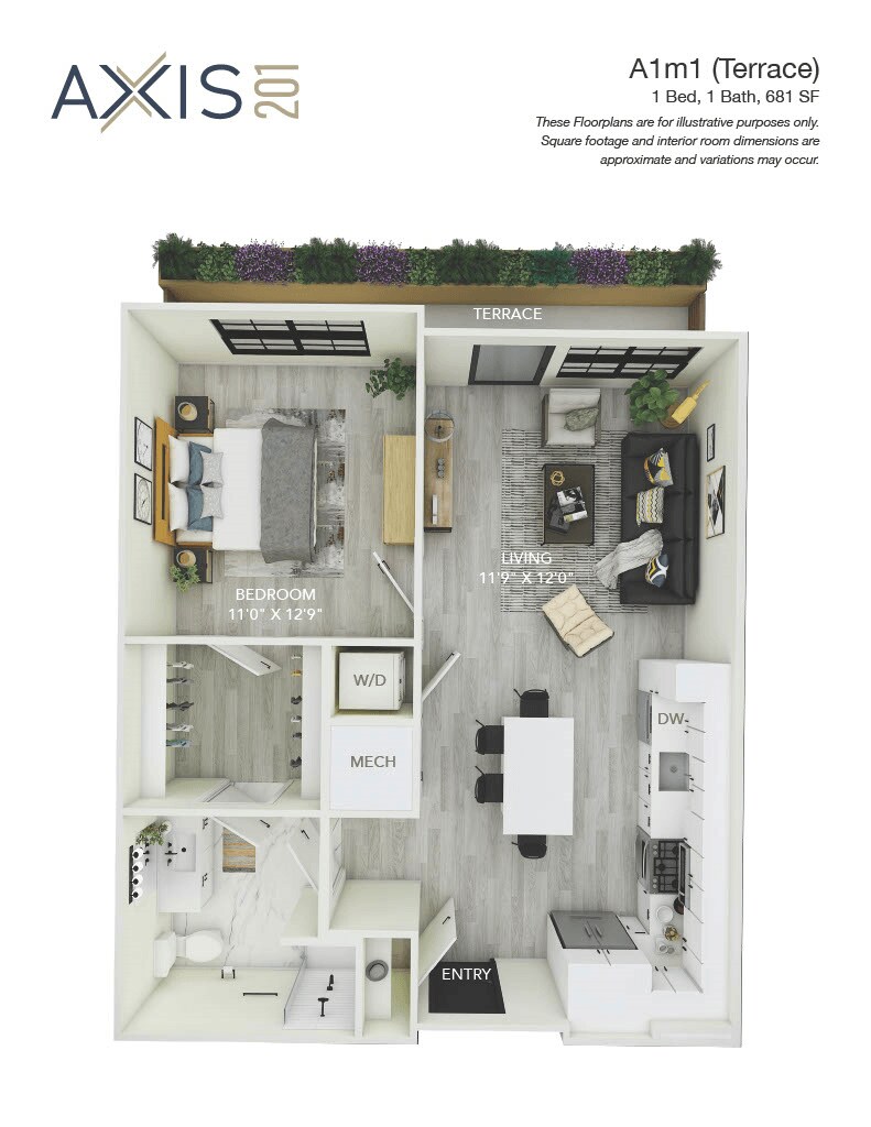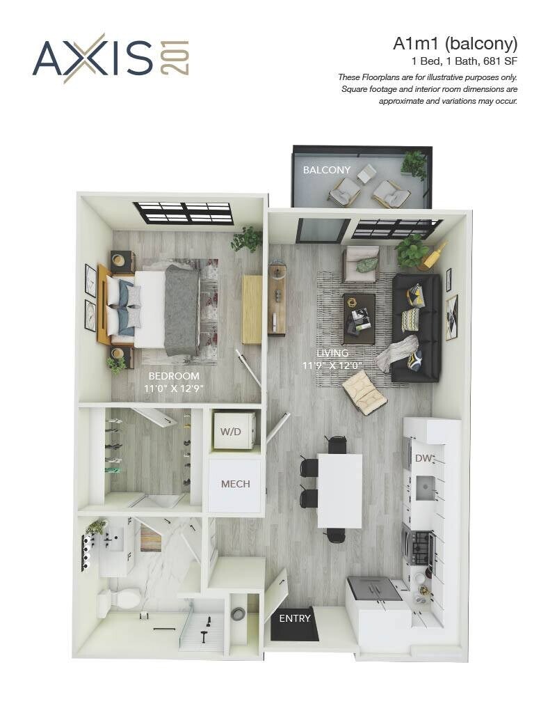 Axis 201 offers Studio to 3 Bedroom apartments starting from $1,762 and having 333–1,550 sq ft. Here is the current pricing and availability: