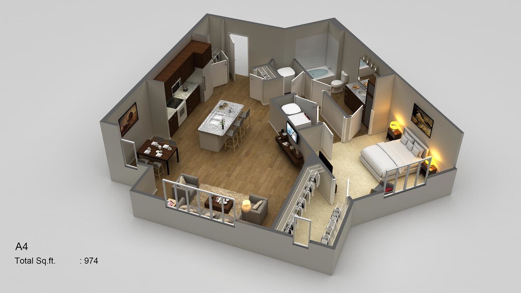 1 Bed, 1 Bath, 860 sq ftModel Gallery