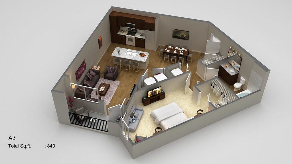 1 Bed, 1 Bath, 840 sq ftModel Gallery
