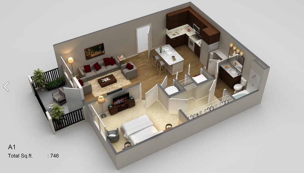 Apartment Model: A1From $1,3091 Bedroom, 1 Bath, 746 sq ftAvailable Now![]()