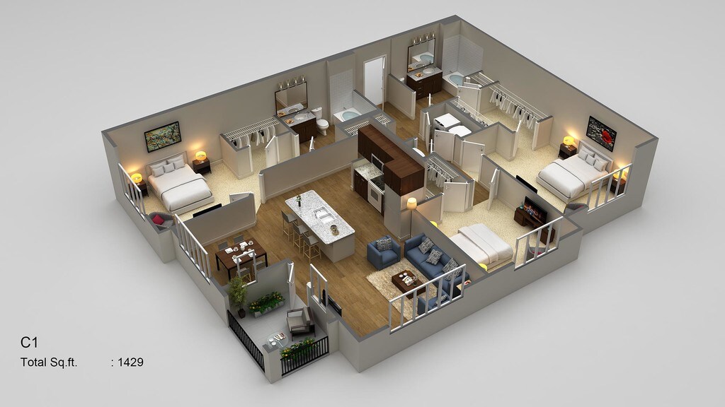 1 Bed, 1 Bath, 859 sq ftModel Gallery