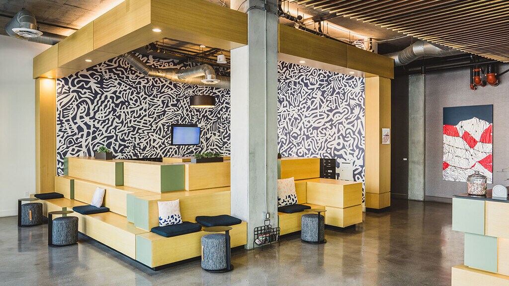 - Clubroom features private work-from-home spaces, lounge seating and booth seatin