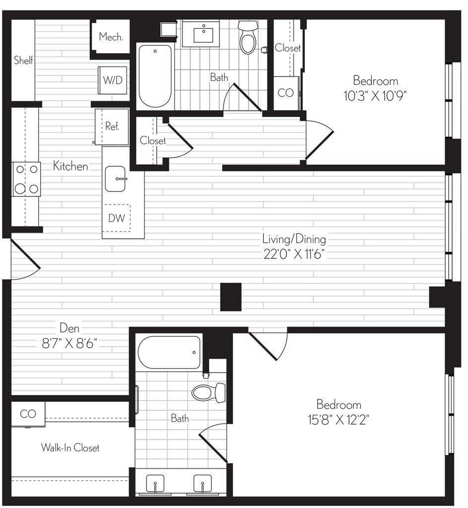 - Sustainable, wide-plank flooring in living areas