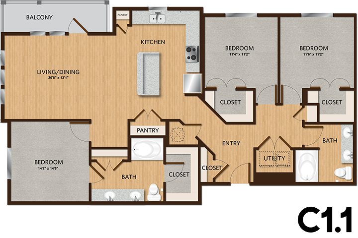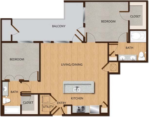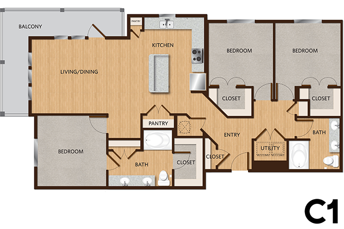 1 Bed, 1 Bath, 624 sq ftAvailable NowModel Gallery