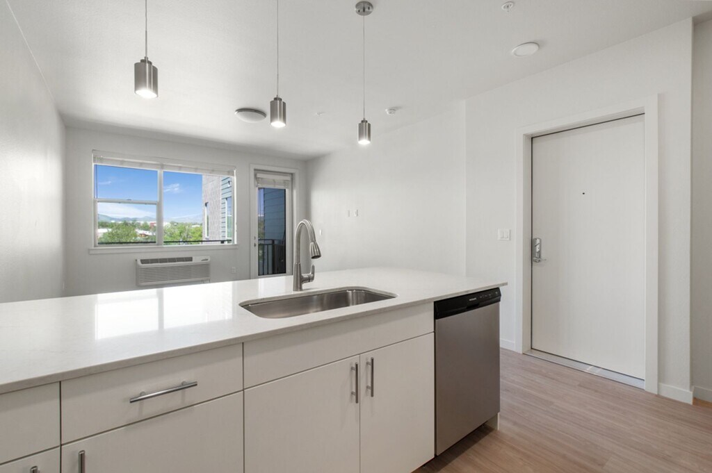Welcome to Axis West Flats, where modern design meets the best of Denver’s west-side living. Located on the border of three dynamic neighborhoods - Sloan’s Lake, West Colfax and Lakewood Gulch Park - Axis West Flats offer walkable and bikeable access to a myriad of restaurants, coffee shops, parks and highways for a quick escape to the mountains. This contemporary community combines natural beauty, urban convenience and thoughtful amenities for a truly elevated lifestyle. Our spacious studio, one and two-bedroom apartments feature large rooms with walk-in closets, sleek finishes, open layouts and private balconies or Juliet doors that let in abundant natural light and fresh mountain air. Bring the outside into your living room with fully functioning garage door walls. Each unit includes a full-size washer and dryer, stainless steel appliances and smart design details that make everyday living easy and comfortable. Located just one block from the light rail station, residents enjoy quick access to downtown Denver, Golden and beyond — perfect for commuters and city explorers alike. At Axis West Flats, every detail is designed with your lifestyle in mind. Community amenities include a covered, gated attached garage with EV charging stations, secure bike storage, mail room, community patio with gas grills and a firepit and a pet wash station for your furry companions. We’re proudly pet-friendly, because we know pets are part of the family. Whether you’re unwinding at nearby parks, walking to Sloan’s Lake, or hopping on the train to downtown, Axis West offers the perfect balance of connection, comfort and contemporary style. Live active. Live connected. Live at Axis West.