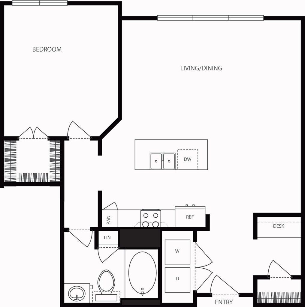 A - Floorplan 1 Apartment Unit: 1-1115Apartment Model: A$1,780Studio, 1 Bath, 516 sq ftAvailable November 12, 20251 Bedroom