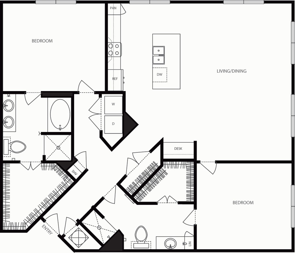 J - Floorplan 1 Apartment Unit: 2-2046Apartment Model: J$2,2451 Bedroom, 1 Bath, 1014 sq ftAvailable December 2, 2025Floorplan H