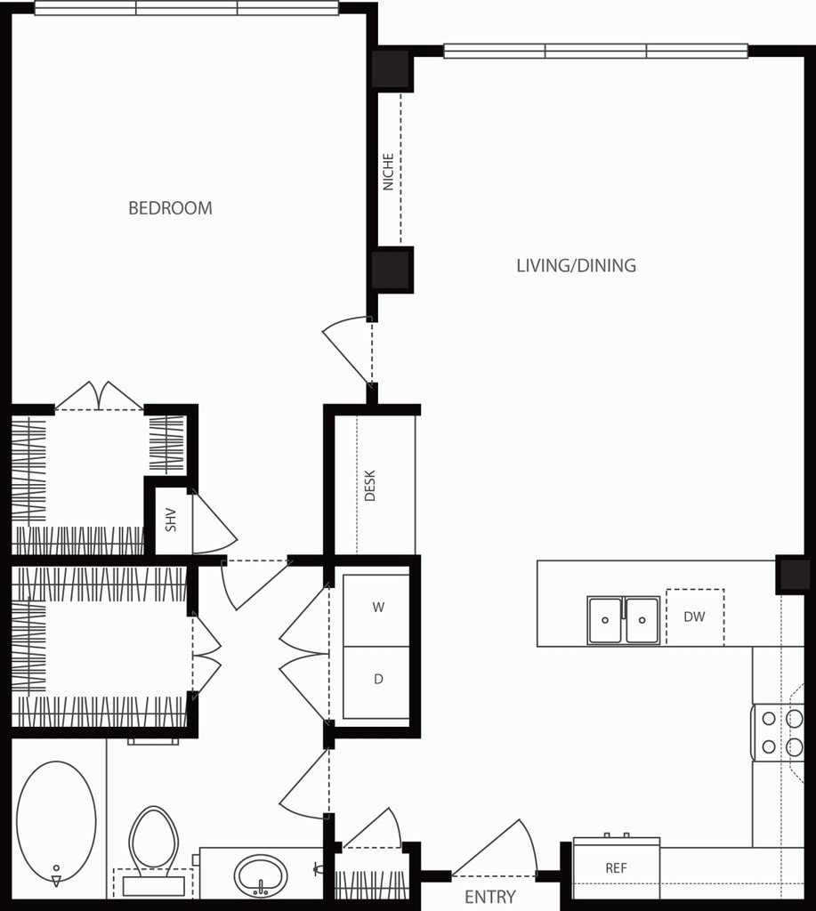 Studio, 1 Bath, 500-516 sq ftAvailable Nov 12Model Gallery