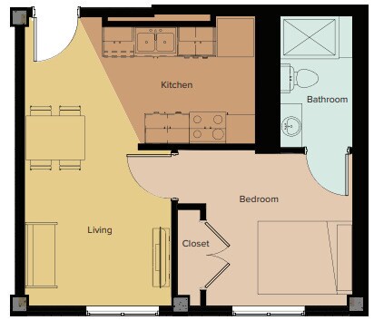 Apartment Model: 1x1$1,2091 Bedroom, 1 Bath, 426-456 sq ftAvailable Now![]()