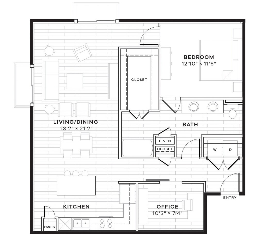 Apartment Model: E3From $1,486Studio, 1 Bath, 539 sq ftAvailable NowFloor plans are artist's rendering. All dimensions are approximate. Actual product and specifications may vary in dimension or detail. Not all features are available in every rental home. Prices and availability are subject to change. Base rent is based on monthly frequency. Additional fees may apply, such as but not limited to package delivery, trash, water, amenities, etc. Deposits vary. Please see a representative for details.