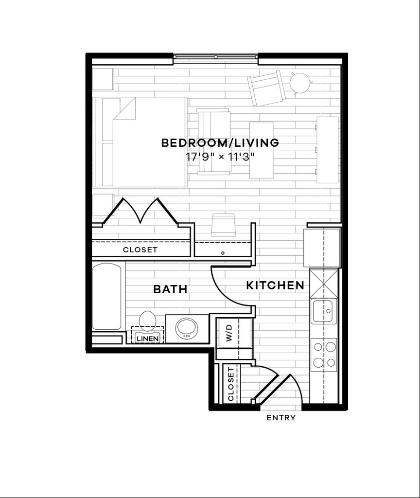 Apartment Model: E4From $1,175Studio, 1 Bath, 378 sq ftAvailable NowFloor plans are artist's rendering. All dimensions are approximate. Actual product and specifications may vary in dimension or detail. Not all features are available in every rental home. Prices and availability are subject to change. Base rent is based on monthly frequency. Additional fees may apply, such as but not limited to package delivery, trash, water, amenities, etc. Deposits vary. Please see a representative for details.