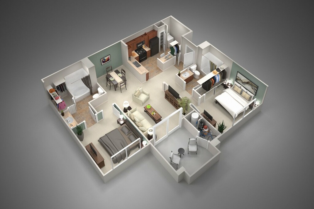 Two Bedroom/Two Bath (b1-205) - Floorplan 2 3 Bedrooms