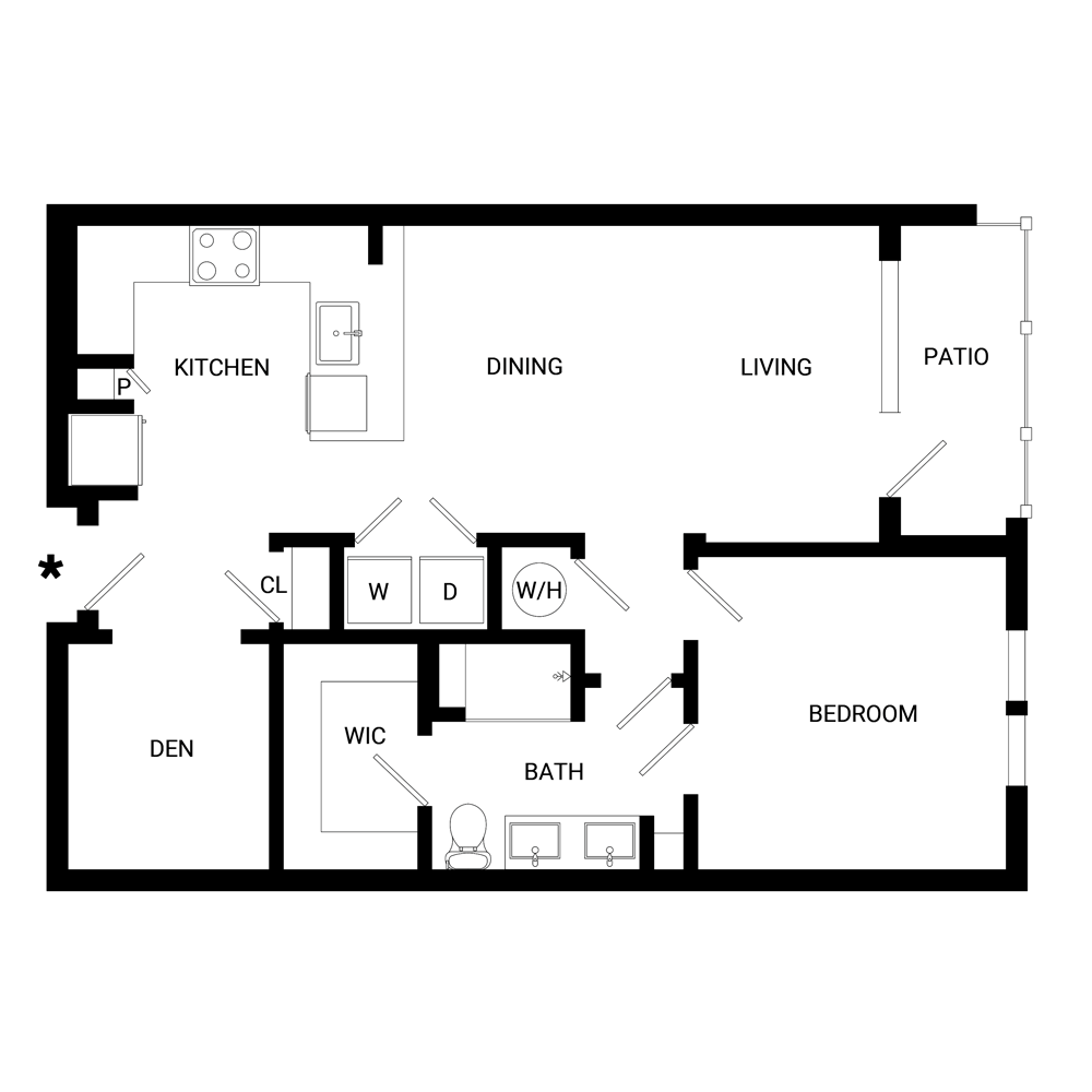 1 Bed, 1 Bath, 632 sq ftModel Gallery