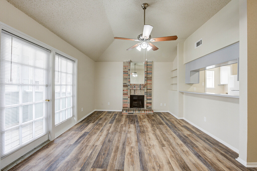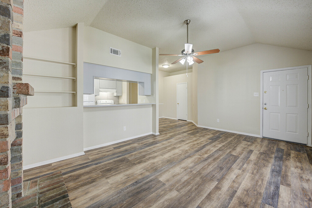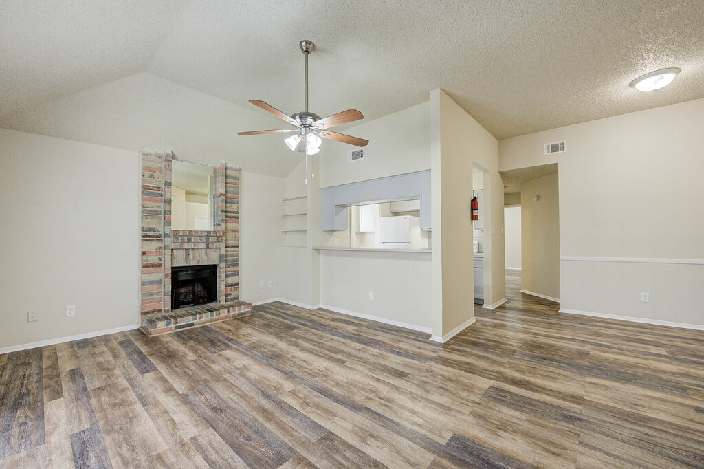 Hablamos Español) Recently remodeled large apartments with 2 bedrooms / 2 baths and full size Washer/Dryer Connections Wood Burning fireplace, built-in bookshelves, new kitchen cabinetry, large walk-in closets, new appliances, Ceiling Fans, private balconies. Pet friendly Children Playground Gated Entrance / security system, doggy park, BBQ/picnic area
