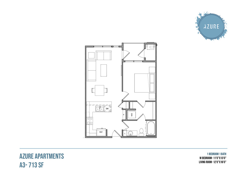 Azure Apartments offers 1 to 3 Bedroom apartments starting from $1,252 and having 540–1,300 sq ft. Here is the current pricing and availability: