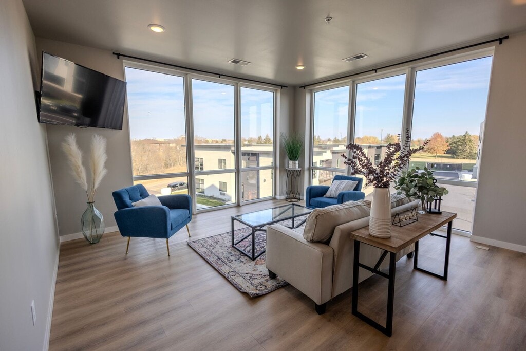 February 5, 2025The internet was an absolute nightmare to get setup because Spectrum didn't have the property listed and then couldn't figure out the correct configurations. Plan on wasting a month trying to just get the internet that is included. And plan on having yet more issues with the internet two months later. Toilet clogged on very first night and is a legitimate concern every time it is used. The apartment is very cold and have frost on the inside of my windows, something which I have not experienced ...since I was a child in an 1800s-era house with holes in the roof. The refrigerator is atrocious and runs very loud all of the time. Managment sends emails constantly, reprimanding the "community" and, at this point, it just feels like a police state. Door entry is ridiculous: no keys whatsoever, and the app they use crashes, constantly needs to be updated, and takes so long to open any doors, if they open at all. I shouldn't have to trudge through snow and ice to get to a different door, out of the way, just to get in, especially if this a "luxury" apartment. The parking for the Azure building just doesn't make any sense and just seems out of the way. When it comes to storage, forget it, you will not have any, it's just so much wasted space and very poor design choices. Hot water in the shower does not last long at all, approximately 10-15 minutes and it goes cold; again, something I've only experienced in a very old house before. When neighbors below are washing laundry, I can smell a very potent sewer smell since the pipe is open. External property lights are so glaringly bright that it's hard to sleep at night, even with blinds shut. There are outlets and switches that don't do anything. My unit had paint and glue on the floor throughout, in addition to warping. Walls have visible patching, scuff, and jabs, etc. upon move in. The only thing that is really good about this place is the view on the west side, but that is quite literally it. I doubt even I will re-rent and wish I had stayed where I was.Read MoreReview from Apartments.com