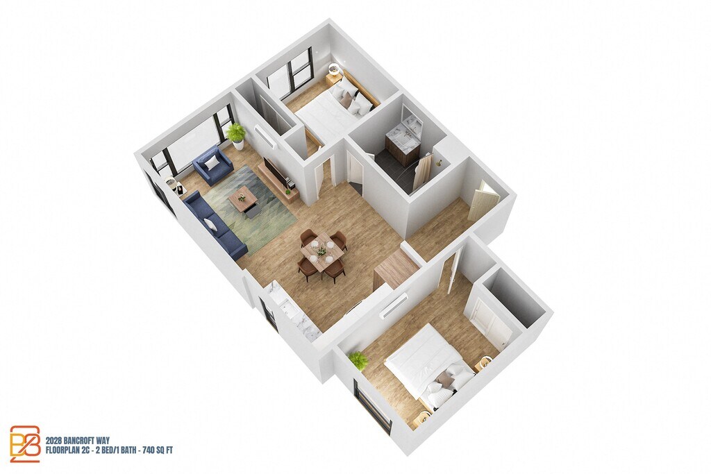 Apartment Model: 2C$3,8952 Bedroom, 1 Bath, 740 sq ftAvailable Now![]()