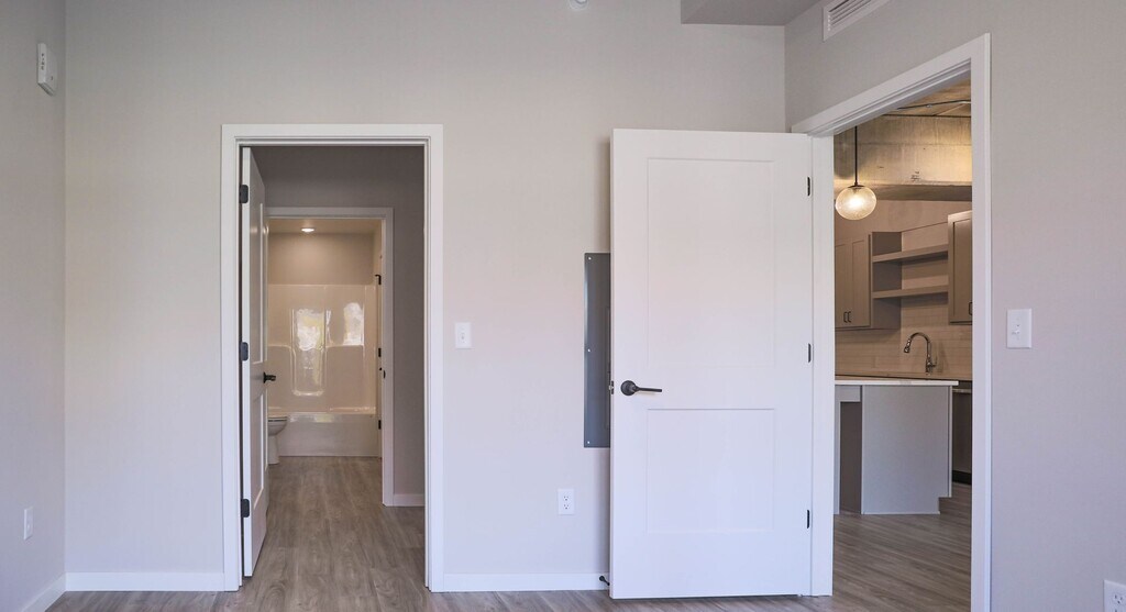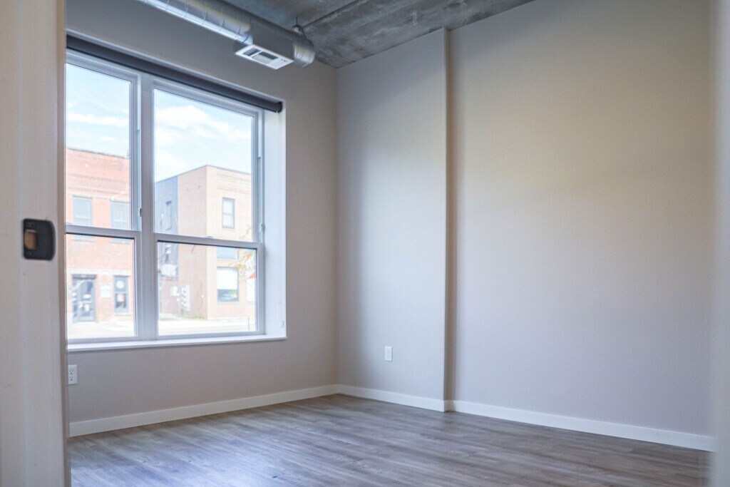 Experience luxury living in the heart of Downtown Eau Claire in one of the newest and most modern apartment communities that the city has to offer. Upon entering this spacious Junior One Bedroom, you are welcomed into a life of lavish living with hard surface countertops, LVT flooring, 9-foot ceilings, contemporary light fixtures with LED lighting, stainless steel appliances, oversized windows & patio doors with black out shades and in-unit laundry. Relax in the exquisite second floor community lounge that is equipped with a pool table, flatscreen tv, kitchenette and plenty of seating. Take a step outside to the rooftop patio and enjoy outdoor seating with a large grilling area or find yourself in the Bark Park with your furry friends. DIMENSIONS: Living Area - 15' 3" x 12' 10" Bedroom - 8' 7" x 9' 3" Patio - 9' 2" x 5' 10" PARKING: *Heated underground - $165/month, limit of one spot per unit *North Barstow ramp - est. $55/month with the City of Eau Claire
