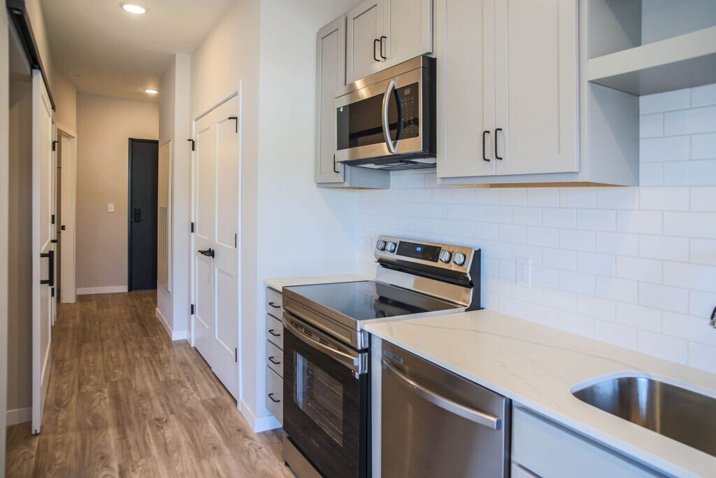 Experience luxury living in the heart of Downtown Eau Claire in one of the newest and most modern apartment communities that the city has to offer. Upon entering this spacious one bedroom, you are welcomed into a life of lavish living with hard surface countertops, LVT flooring, 9-foot ceilings, contemporary light fixtures with LED lighting, stainless steel appliances, oversized windows & patio doors with black out shades and in-unit laundry. Relax in the exquisite second floor community lounge that is equipped with a pool table, flatscreen tv, kitchenette and plenty of seating. Take a step outside to the rooftop patio and enjoy outdoor seating with a large grilling area or find yourself in the Bark Park with your furry friends. DIMENSIONS: Living Area - 13' 0" x 12' 0" Bedroom - 12' 8" x 10' 10" Patio - 5' 6" x 9' 8" PARKING: *Heated underground - $165/month, limit of one spot per unit *North Barstow ramp - est. $55/month with the City of Eau Claire