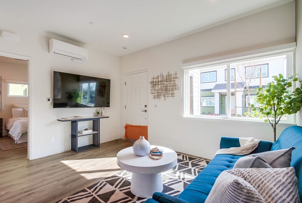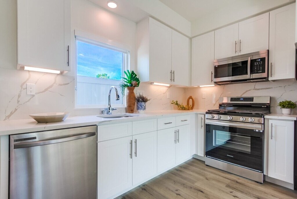 You must see to believe the tasteful, spacious interior in this new-constructed 1 and 2 bedroom apartment homes. Be one of the first to rent at this gorgeous, new property Clairemont neighborhood of San Diego -- and spread the word, so your friends can be your neighbors! Amenities abound for the discerning renter, including: * FLAT-SCREEN TV * In-Unit, stackable Washer & Dryer * Fiber-optic cable ready * New Stainless Steel appliances: electric or gas range, refrigerator, built-in vented microwave, dishwasher, and stainless steel sink / spray option faucet * Marbled-Quartz counters and European-style cabinetry, with brushed nickel hardware in both kitchen and bathroom * Mini-split air conditioning * Luxe-look yet easy-maintenance plank flooring throughout * Recessed and contemporary accent lighting * Water-efficient plumbing * Energy-conserving vinyl dual paned windows; new louvered blinds on all windows * Generous interior storage space: including walk in closet. Ample street parking available in this residential area. Pets (2 maximum) are welcome with an additional deposit of $300 per pet, and a monthly pet fee: $30/mo per dog; $25/mo per cat.