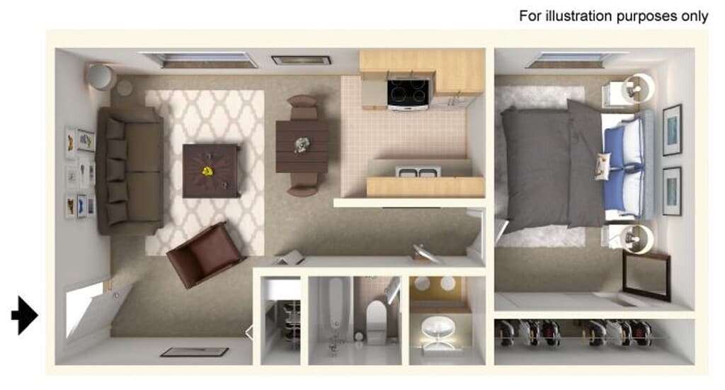Apartment Model: 1X1From $7791 Bedroom, 1 Bath, 610 sq ftAvailable Now![]()