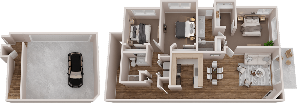 Apartment Model: Plan E with 2 Car Garage3 Bedroom, 2 Bath, 1288 sq ftUnavailable![]()
