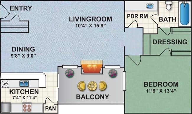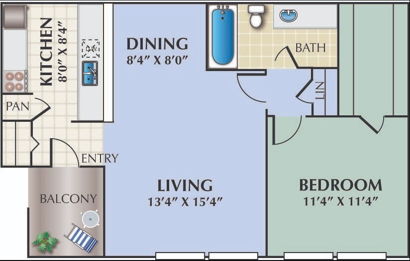 Apartment Model: I1 Bedroom, 1 Bath, 581 sq ftUnavailable![]()