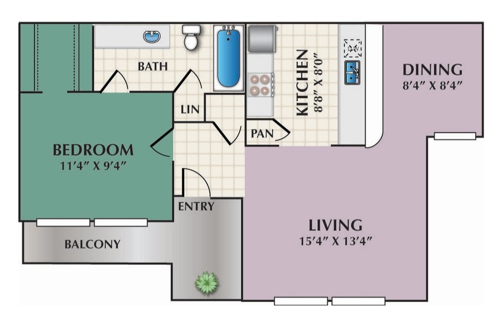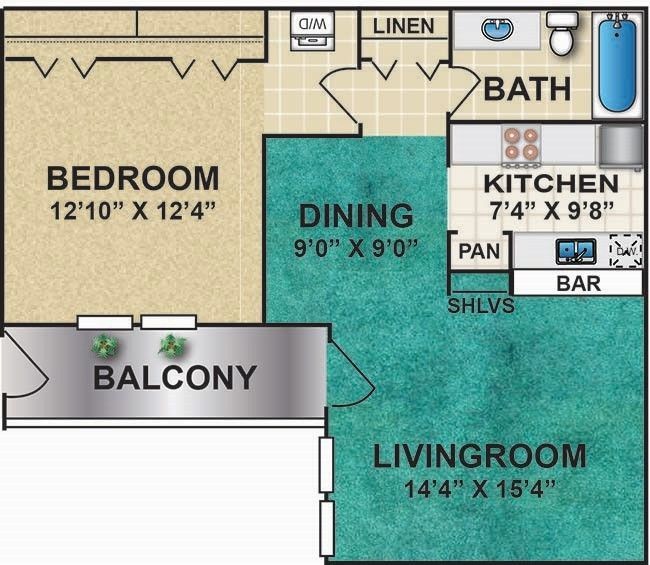 Apartment Model: Q1 Bedroom, 1 Bath, 530 sq ftUnavailable![]()