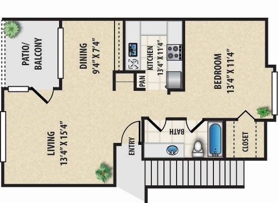 Apartment Model: S1 Bedroom, 1 Bath, 810 sq ftUnavailable![]()