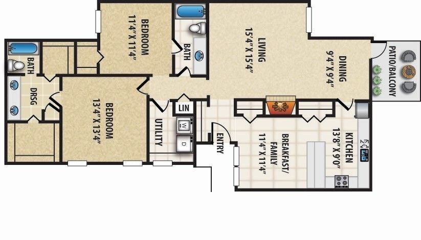 Apartment Model: C1 Bedroom, 1 Bath, 809 sq ftUnavailable![]()