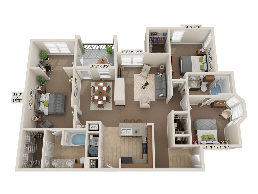 1 Bed, 1 Bath, 854 sq ftAvailable NowModel Gallery
