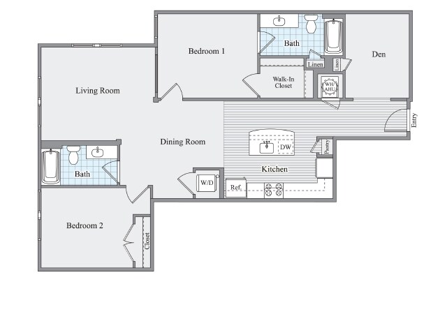 1BR + Den D - Floorplan 1 2 Bedrooms