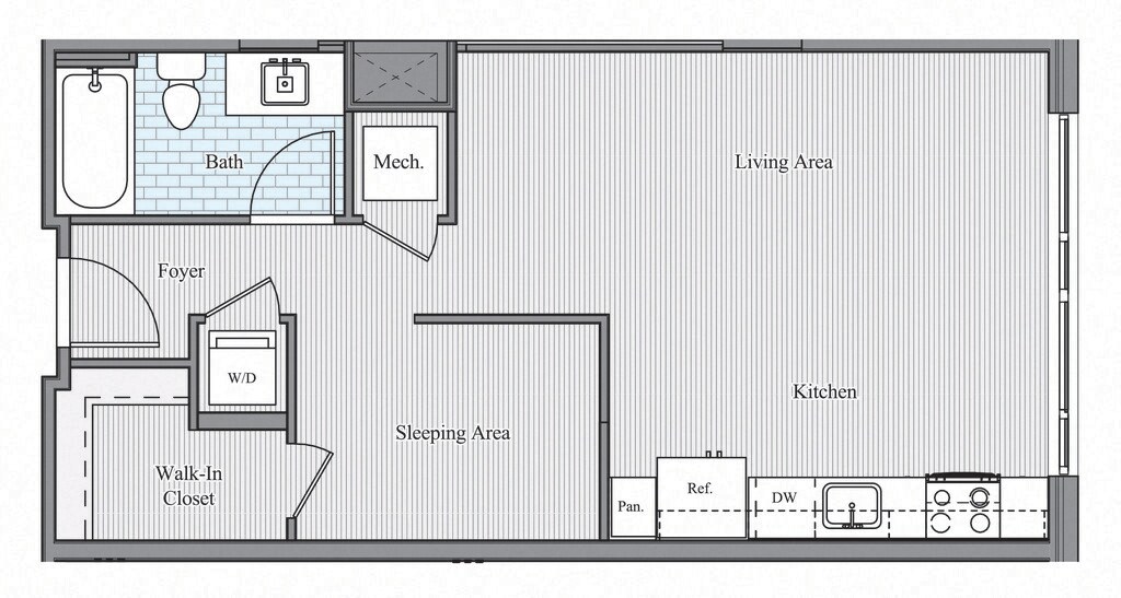 Apartment Model: Studio HFrom $2,302Studio, 1 Bath, 555 sq ftAvailable NowFloor plans are artist's rendering. All dimensions are approximate. Actual product and specifications may vary in dimension or detail. Not all features are available in every rental home. Please see a representative for details.