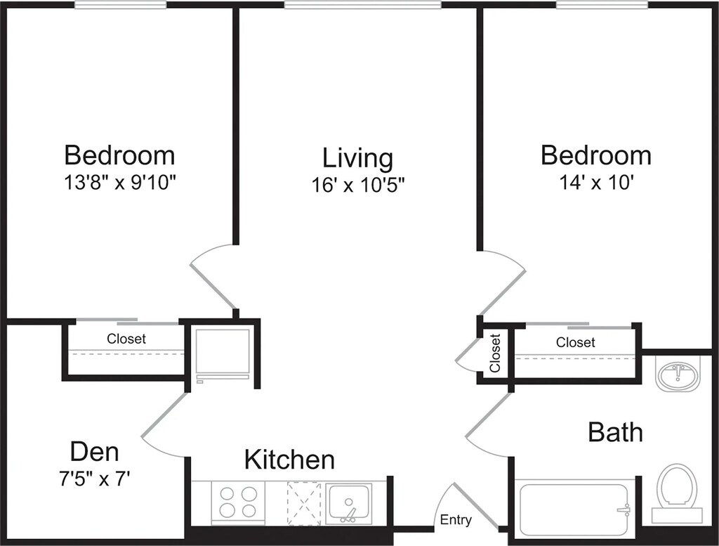 2 Beds, 1 Bath, 752 sq ftModel Gallery