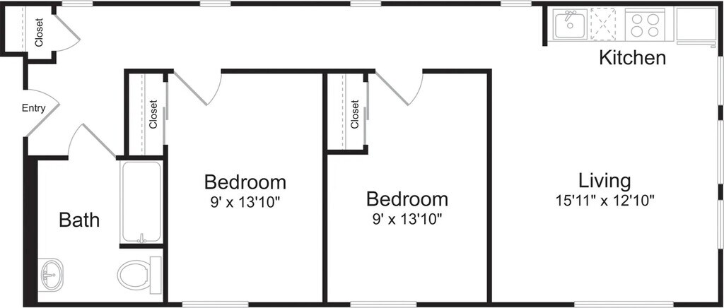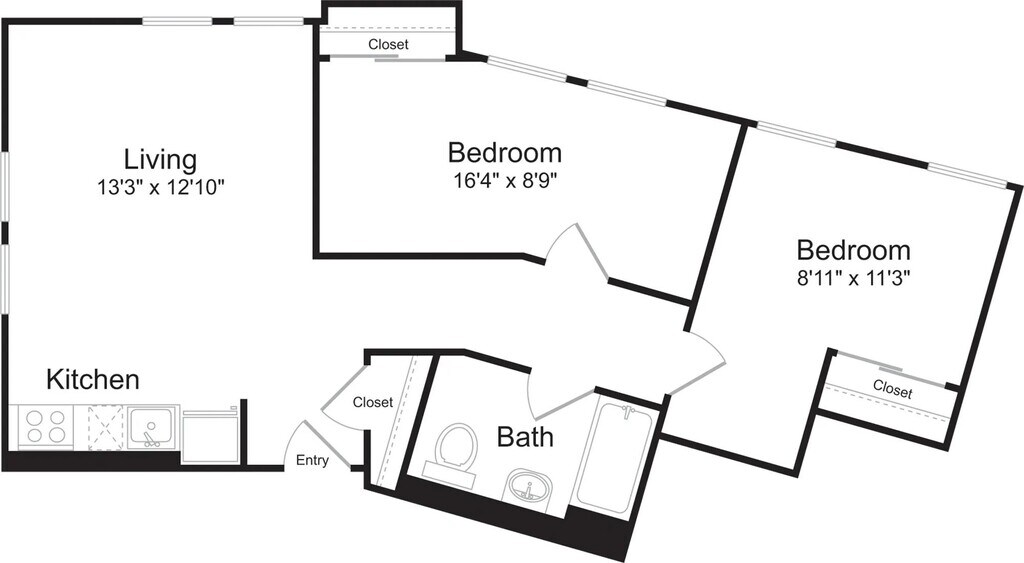2 Beds, 1 Bath, 831 sq ftLargest 2 BedroomThis is the largest 2 Bedroom at this PropertyModel Gallery